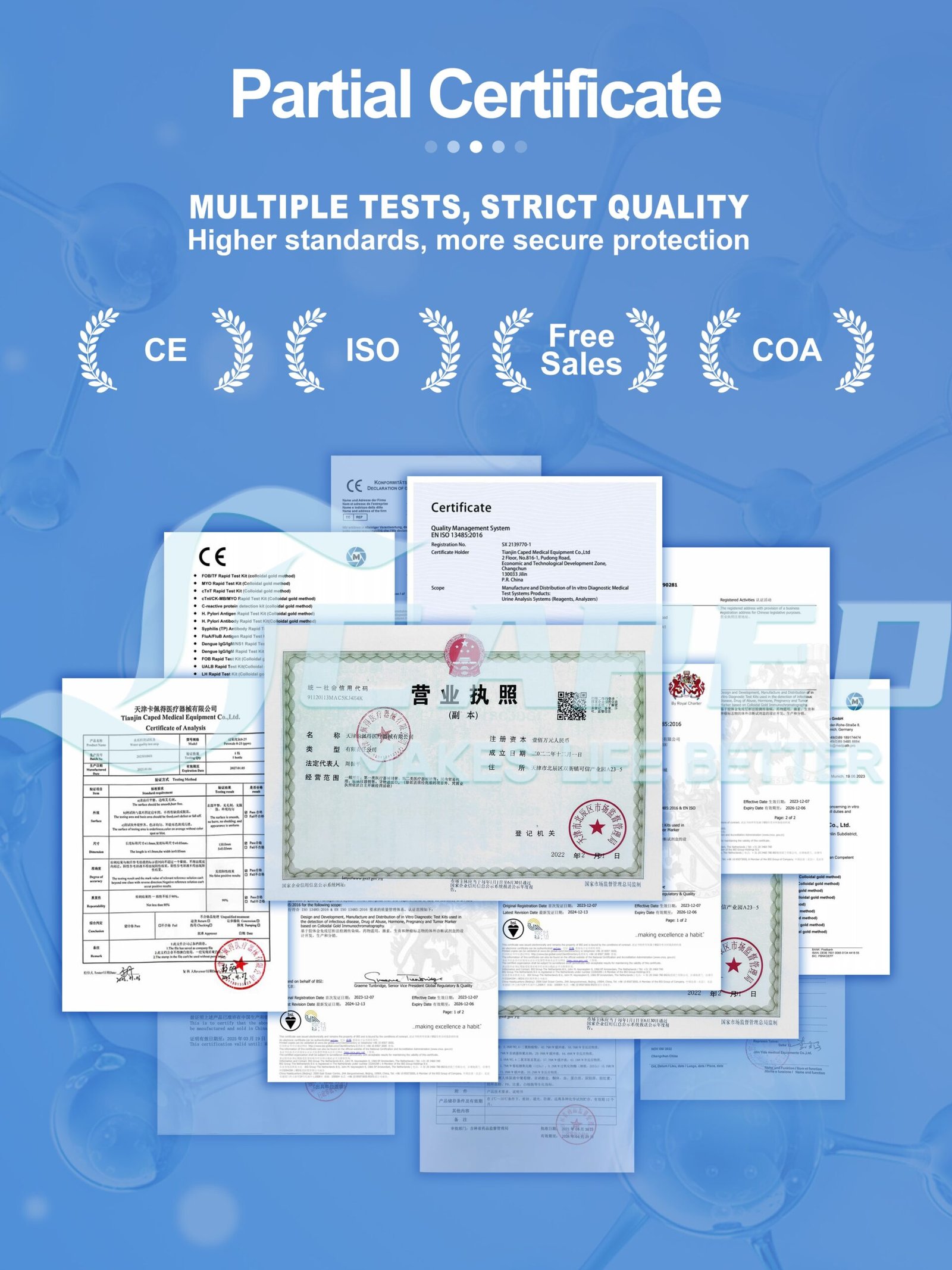 Tianjin Caped Medical Equipment Co.,Ltd. is a biotechnology company specializing in the R&D, production, sales, and service of In Vitro Diagnostic (IVD) products,with 20 years of industry experience. We provide comprehensiverapid diagnosis managementsolutions, helping healthcare systems worldwide to improve their efficiency and patient care.