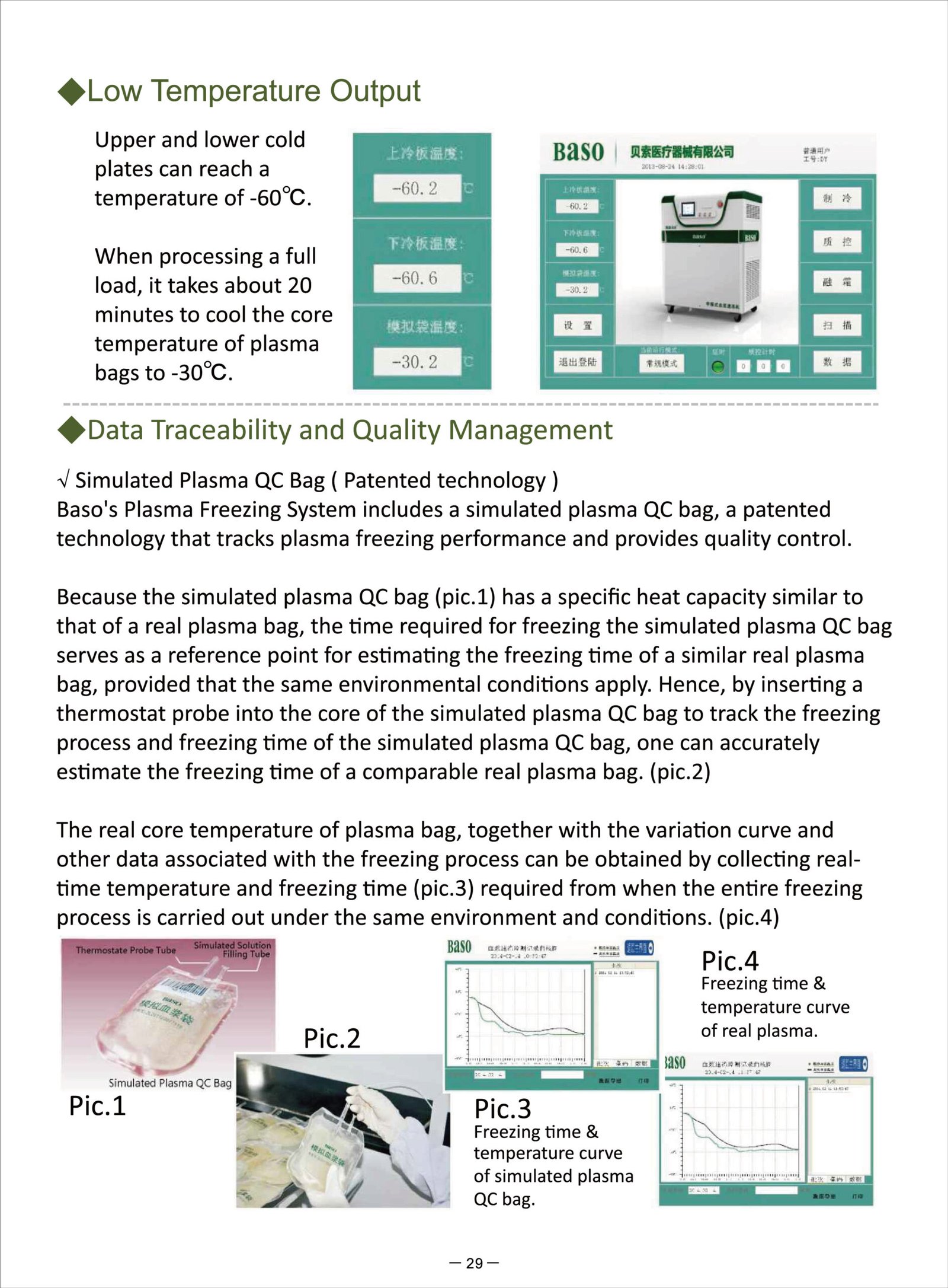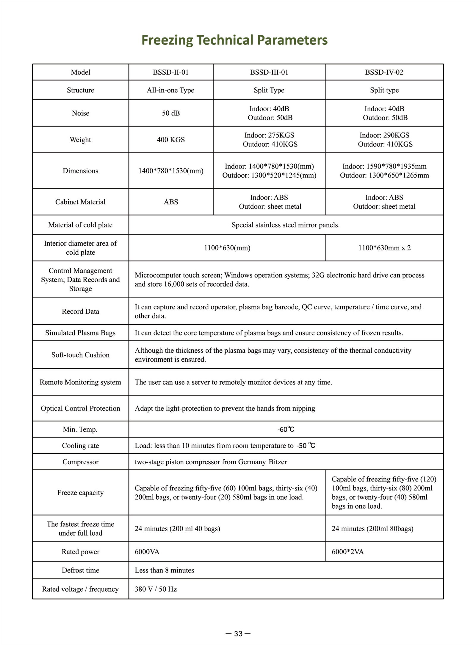 When processing a full load, it takes about 30 minutes to cool the core temperature of plasma bags to -30℃.