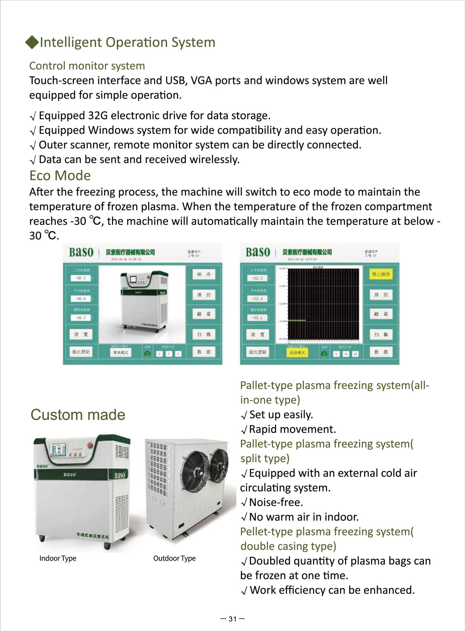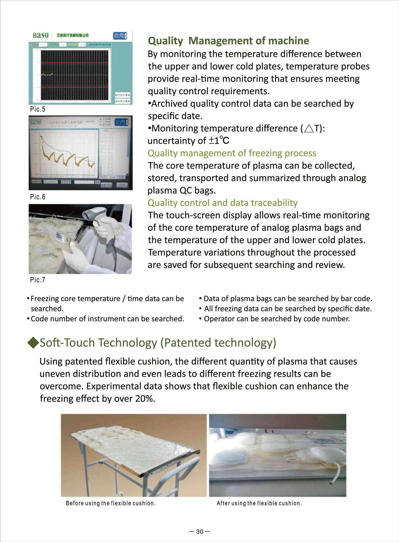 Our plasma freezer includes a data management system for plasma freezing that can track the plasma bag’s core temperature and simultaneously monitor freezing time during the whole process.