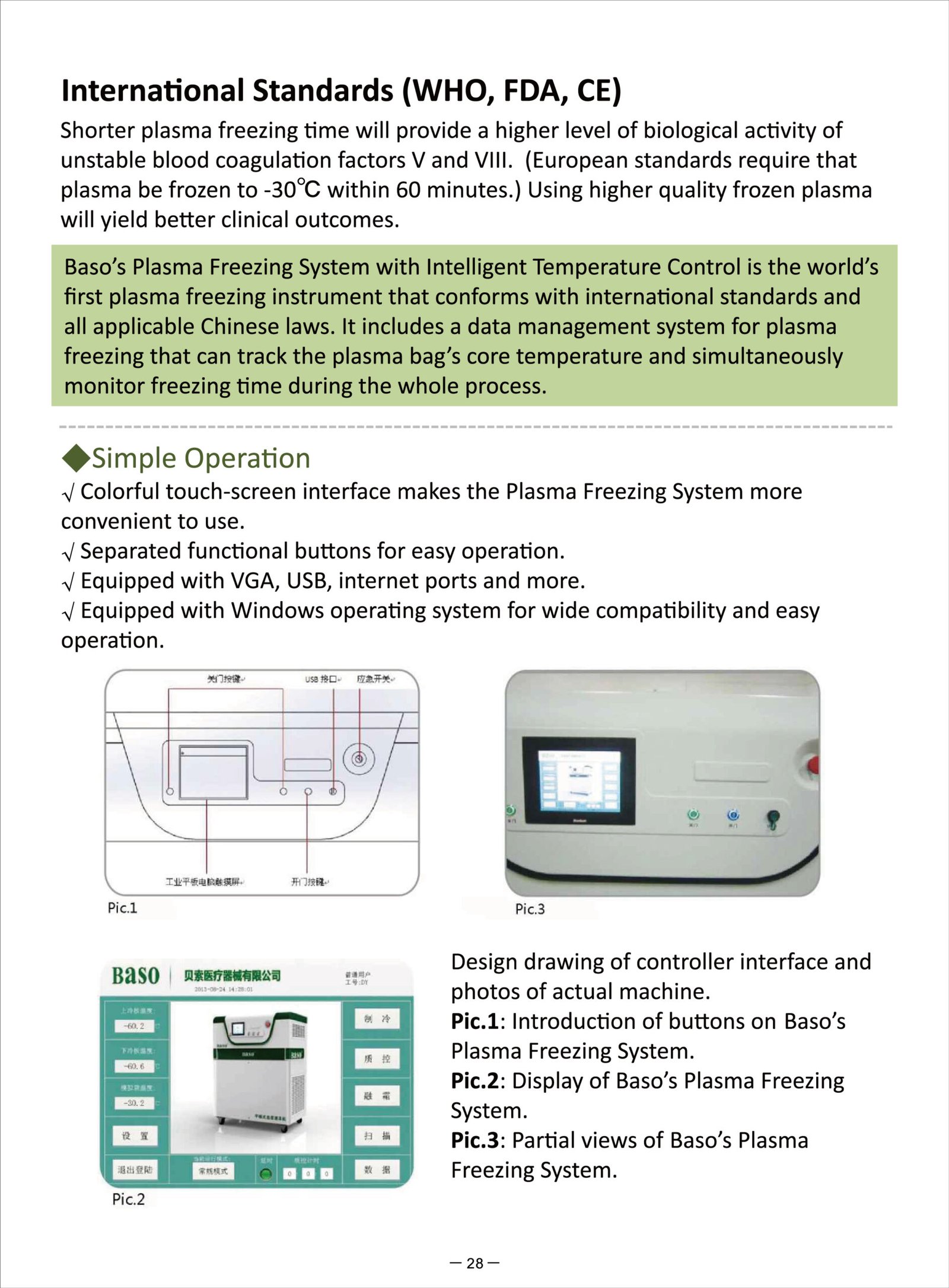 Shorter plasma freezing time will provide a higher level of biological activity of unstable blood coagulation factors V and VIII. (European standards require that plasma be frozen to -30℃ within 60 minutes.) Using higher quality frozen plasma will yield better clinical outcomes.