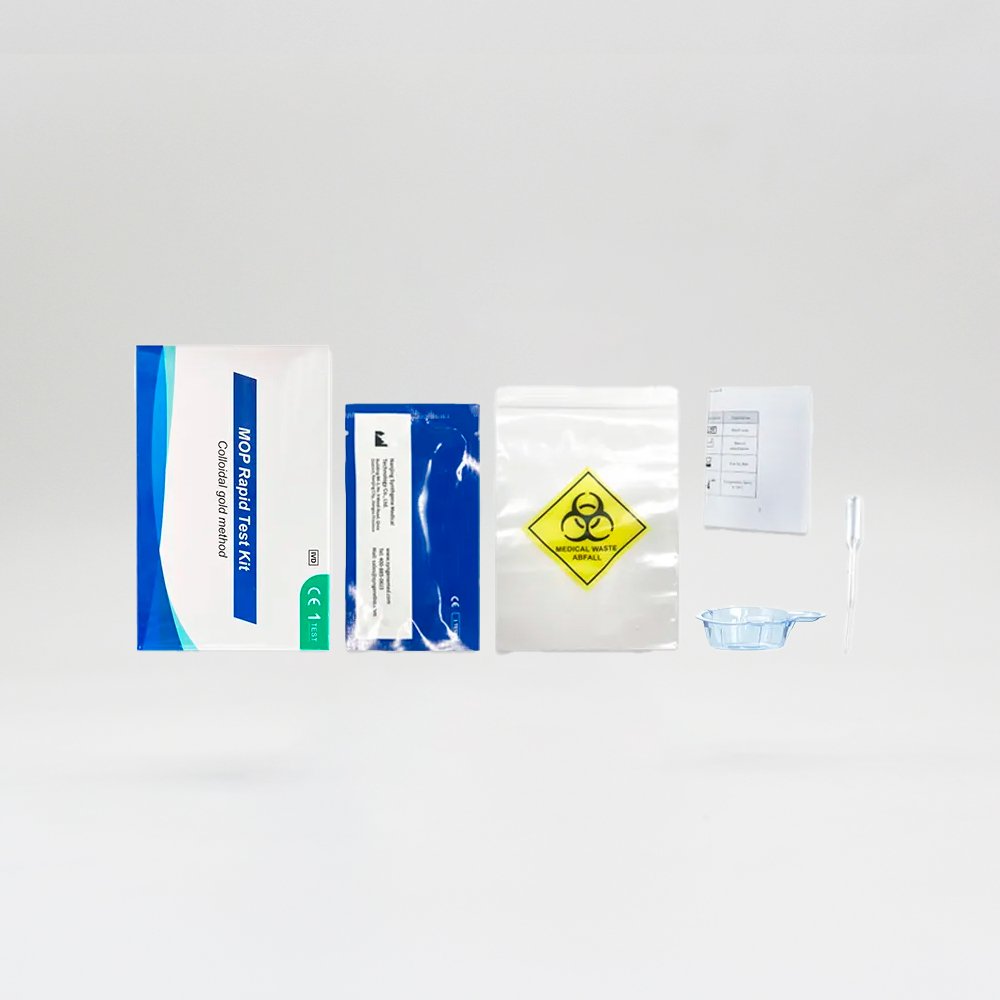 The test kit is a rapid chromatographic immunoassay for the detection of morphine(MOP) in human urine/saliva,This kit can determine if the subject have taken morphine(MOP),It is used for field screening of drug use( please refer to the instruction manual for details.)