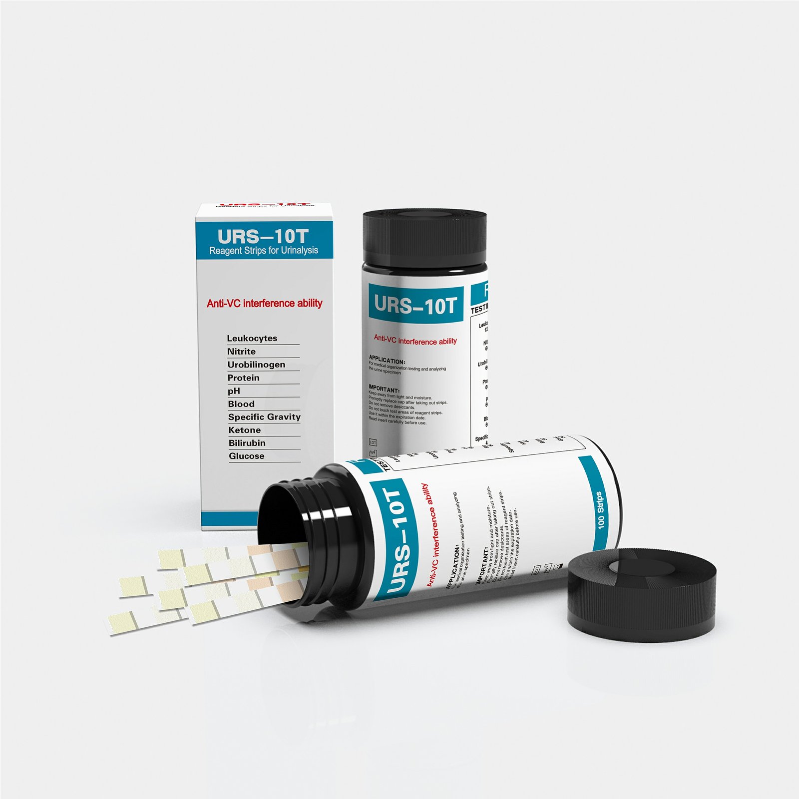 • Test items: Leukocytes, Nitrite, Urobilinogen, Protein, pH, Blood, Specific Gravity, Ketone, Bilirubin, Glucose